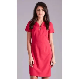 Dámske šaty s hlbším výstrihom zdobeným zlatou sponou. Na chrbte zapínanie na zips.