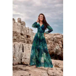Dámske dlhé letné šaty so švom v páse, s rafinovaným výstrihom na chrbte, so skrytým zapínaním na zips, podšité spodničkou do polovice stehien.