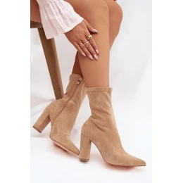Dámské semišové kotníkové boty s prošitím béžové Rosivelle