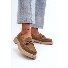 Dámske mokasíny z prírodného semišu. Plochý podpätok zaručuje stabilitu a pohodlie pri chôdzi. Dodatočný ozdobný prvok na prednej strane im dodáva originalitu, vďaka čomu sú nielen praktické, ale aj módne. Tieto mokasíny budú dokonalým doplnkom mnohých rôznych štýlov, ležérnych aj elegantnejších. Pri výbere veľkosti sa riaďte tabuľkou veľkostí.