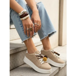 Dámske semišové tenisky s ozdobnou platformou béžovej farby FashionStreet ZY1419
