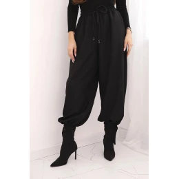 Dámske široké nohavice so zaväzovaním v spodnej časti čierne