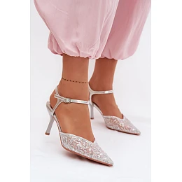 Dámské síťované sandály na jehlovém podpatku se třpytivým zdobením Stříbrné Laria