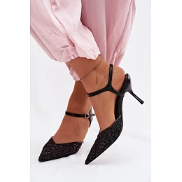 Síťované dámské sandály na podpatku s lesklým zdobením jsou ideální volbou pro ženy, které ocení eleganci s nádechem lesku. Jemné, lesklé ozdoby dodávají celku výjimečný charakter, přitahují pohledy a zvýrazňují každý outfit. Špičaté nosy opticky zeštíhlují nohu a tenký podpatek dodává siluetě lehkost a ženskou půvabnost. Model je zapínán na přezku s nastavitelým páskem, což umožňuje dokonale přizpůsobit sandály noze a zajišťuje stabilitu při chůzi. Skvělá volba na večerní výlety, oslavy a různé slavnostní příležitosti, kde je důležitý styl a elegance. Při výběru velikosti se řiďte tabulkou velikostí.