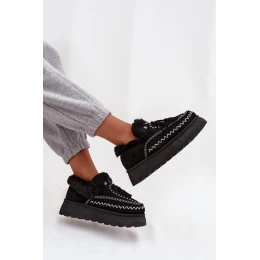 Dámské sněhule na platformě s kožíškem a třásněmi Černé Ferayne
