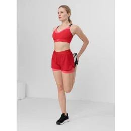 Dámske šortky 2v1 s vnútornou kompresnou nohavicou sú skvelým modelom na všetky druhy športov. Skvelou pridanou funkciou je technológia 4FDry, vďaka ktorej materiál rýchlo schne. Predĺžená nohavica v kontrastnej farbe, rozparky na nohaviciach a ozdobný elastický pás pozdvihujú už tak zaujímavý dizajn.