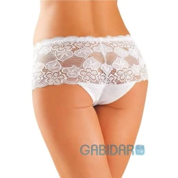 Dámske čipkované nohavičky šortkového strihu od značky Gabidar.Nohavičky sú vyrobené z veľmi príjemnej bavlny a vďaka tomu sú nohavičky veľmi pohodlné.Nohavičky sú z veľkej časti tvorené jemnou čipkou s kvetinovým vzorom a spodná časť je hladká. Materiálové zloženie: 95% CO, 5% EL