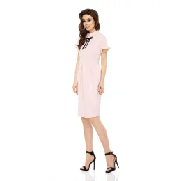 Dámske spoločenské šaty s golierom, stužkou a krátkym rukávom dlhé - Ružová / M - Lemoniade