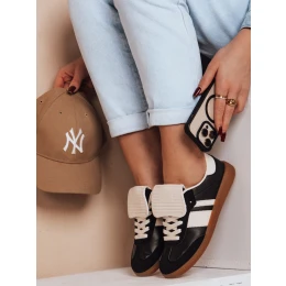 Dámske tenisky na plochej gumovej podrážke, vyrobené z ekologickej kože. Model má látkovú stielku. Ozdoba v podobe klopiek nad šnúrkami podčiarkuje originálny dizajn. Ideálne na každodenný styling - hodia sa k džínsom a športovým nohaviciam.