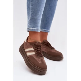 Stylové dámské tenisky z eko semiše jsou pohodlnou volbou na každý den. Model na platformě jemně zvýrazňuje siluetu a zajišťuje stabilitu při chůzi. Dva pásky umístěné z boku dodávají sportovní, moderní vzhled. Měkká pěnová vložka zaručuje pohodlí po celý den, takže tenisky jsou ideální pro každodenní outfity. Při výběru velikosti se řiďte tabulkou velikostí.