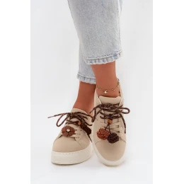 Dámské tenisky na platformě s ozdobnými pompony béžové Corinna