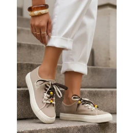 Dámske tenisky tenisky s ozdobnými korálkami béžová ZY1408