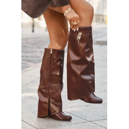Tieto dámske čižmy vyrobené z ekologickej semišovej kože sú ideálnou kombináciou pohodlia a elegancie. Sú to čižmy na platforme. Model sa zapína pomocou praktického zipsu a efekt zrolovaného lýtka mu dodáva jedinečný charakter. Celkový vzhľad dotvára pásik s ozdobným detailom umiestneným na vrchnej časti, ktorý vytvára nenápadný dekoratívny akcent. Sú to štýlové čižmy, ktoré sú ideálne na každodenný aj elegantný štýl. Pri výbere veľkosti sa riaďte tabuľkou veľkostí. Pri výbere veľkosti sa riaďte tabuľkou veľkostí.