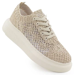 Dámske topánky na platforme so šnurovaním béžové Vinceza 17371