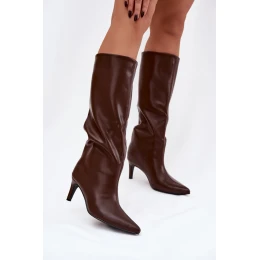 Dámske čižmy z ekokože sú elegantným návrhom na chladné dni. Vložené a umiestnené na štíhlom podpätku dodávajú siluete ľahkosť a ženský šarm. Špicatá špička zvýrazňuje rafinovaný charakter a zateplenie zaručuje pohodlie a teplo počas jesenných a zimných dní. Ideálne na efektné módne štylizácie.
