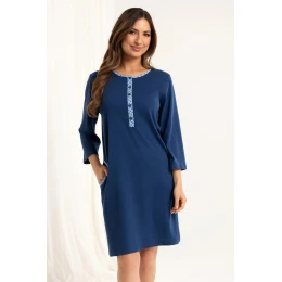Nočná košeľa 165 J/25 je funkčnou a štýlovou voľbou pre ženy, ktoré si cenia pohodlie a voľnosť pohybu. Je vyrobená z kvalitnej 100 % bavlny, je vzdušná, mäkká a príjemná na pokožku. Model má 7/8 rukávy, otvorený polkruhový výstrih a praktické vrecká na bokoch, čo zvyšuje jeho funkčnosť - je ideálny aj pre dojčiace matky. Vďaka dĺžke po kolená a voľnému strihu je košeľa ideálna na všetky ročné obdobia.