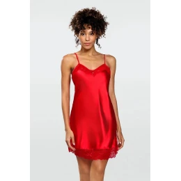 Čipkovaný výstrih a spodný okraj nočnej košele dodávajú celému modelu eleganciu a štýl. Košíčky sú zdobené trblietavými zirkónmi. Nočná košeľa má tenké ramienka, ktorých dĺžku možno nastaviť. Mierne rozšírený strih smerom nadol zaručuje pohodlie a komfort pri nosení.