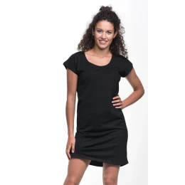 Tunika-šaty voľnejšieho, pohodlného strihu. Materiál je single jersey. Vo výstrihu lemovanie. Šaty majú elastické, dvojité švy. Gramáž: 170g / m2.