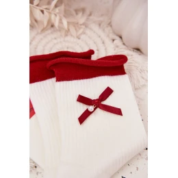 Tieto štýlové dámske vianočné ponožky v bielej farbe s jemnou ozdobnou mašľou sú ideálne na sviatočné obdobie. Sú vyrobené z mäkkého a elastického materiálu a zaručujú pohodlie počas celého dňa. Ozdobná mašľa dodáva ponožkám slávnostný a hravý vzhľad. Ideálne na domáce pohodlie, ako doplnok k vianočnému oblečeniu alebo ako originálny darček.