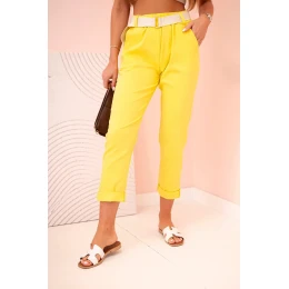 Dámske viskózové nohavice s opaskom a rozšírenými nohavicami tmavo žlté