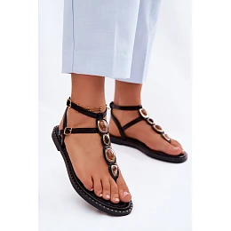Dámské sandály typu žabky vyrobené z eko kůže jsou stylovou a pohodlnou volbou na teplé dny. Plochý tvar zajišťuje komfort nošení a dvojité zapínání na sponu umožňuje ideálně přizpůsobit botu noze. Přední část zdobí výrazné bižuterní ozdoby, které dodávají celku eleganci a přitahují pozornost. Ideální pro letní stylizace – jak na každý den, tak na výjimečné příležitosti. Při výběru velikosti se řiďte tabulkou velikostí.