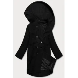 Čierny dámsky kabát plus size s kapucňou (2728)