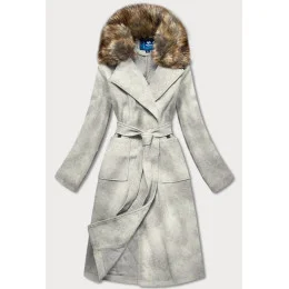 Svetlosivý dámsky kabát s kožušinou (SASKIA)