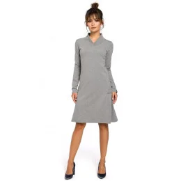 Dámske trapézové šaty s rebrovaným lemom B044 sivé - BEwear