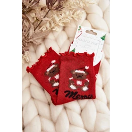 Damskie Błyszczące Świąteczne Skarpety Z Misiem Czerwone
