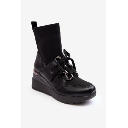 Damskie Botki Na Koturnie Ze Skarpetą Czarne Helladina