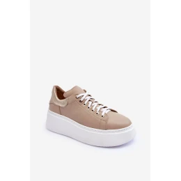 Damskie Buty Sportowe Skórzane na Platformie Beżowe Lemar 10150