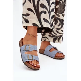 Damskie Klapki Na Korkowej Platformie Z Klamrami Jasny Jeans Vesina