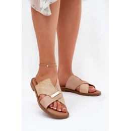 Damskie Klapki Na Płaskim Obcasie Z Ozdobnym Detalem Vinceza 17385 Beżowe