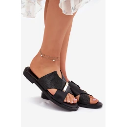 Damskie Klapki Na Płaskim Obcasie Z Ozdobnym Detalem Vinceza 17385 Czarne