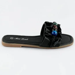 Čierne dámske šľapky s plochou podrážkou (WWW-319)