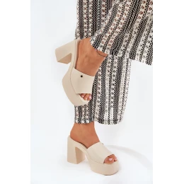Damskie Klapki Z Eko Skóry Na Słupku I Platformie Jasnobeżowe Tamirella