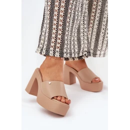 Damskie Klapki Z Eko Skóry Na Słupku I Platformie Khaki Tamirella