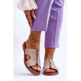 Damskie Klapki Z Ozdobnym Zamkiem Beżowe Lemar Clarence