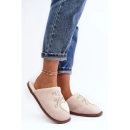 Damskie Klasyczne Kapcie Wsuwane Ocieplane Beżowe Mabira