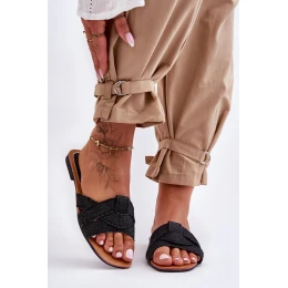 Damskie Materiałowe Klapki Czarne Aversa