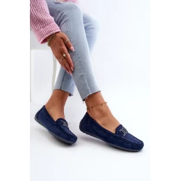 Damskie Modne Zamszowe Mokasyny Granatowe Rabell