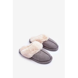 Damskie Papcie Klapki z Futerkiem Szare Pinky