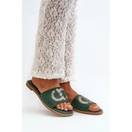 Damskie Płaskie Klapki Z Cekinami S.Barski KV27-052 Zielone