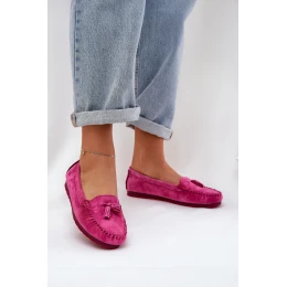 Damskie Płaskie Klasyczne Zamszowe Mokasyny S.Barski LR51-548 Fuksja