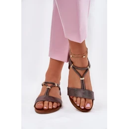 Damskie Płaskie Sandały Z Paskami S.Barski KV51-120 Grafitowe