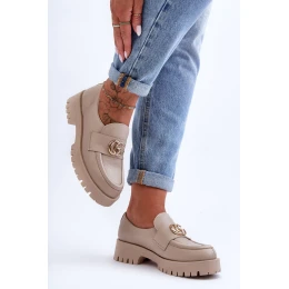 Damskie Półbuty Skórzane Z Ozdobą Beżowe Rosefalls