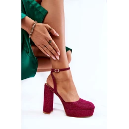 Damskie Sandały Brokatowe Na Słupku Ciemnoróżowe Rosel