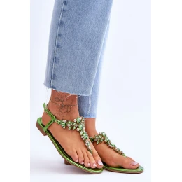 Damskie Sandały Japonki Z Kamieniami Zielone Lenisa