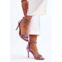 Damskie Sandały Na Szpilce Z Dżetami Fioletowe Perfecto