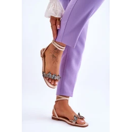Damskie Sandały Z Ozdobnymi Motylami Beżowe Jeane